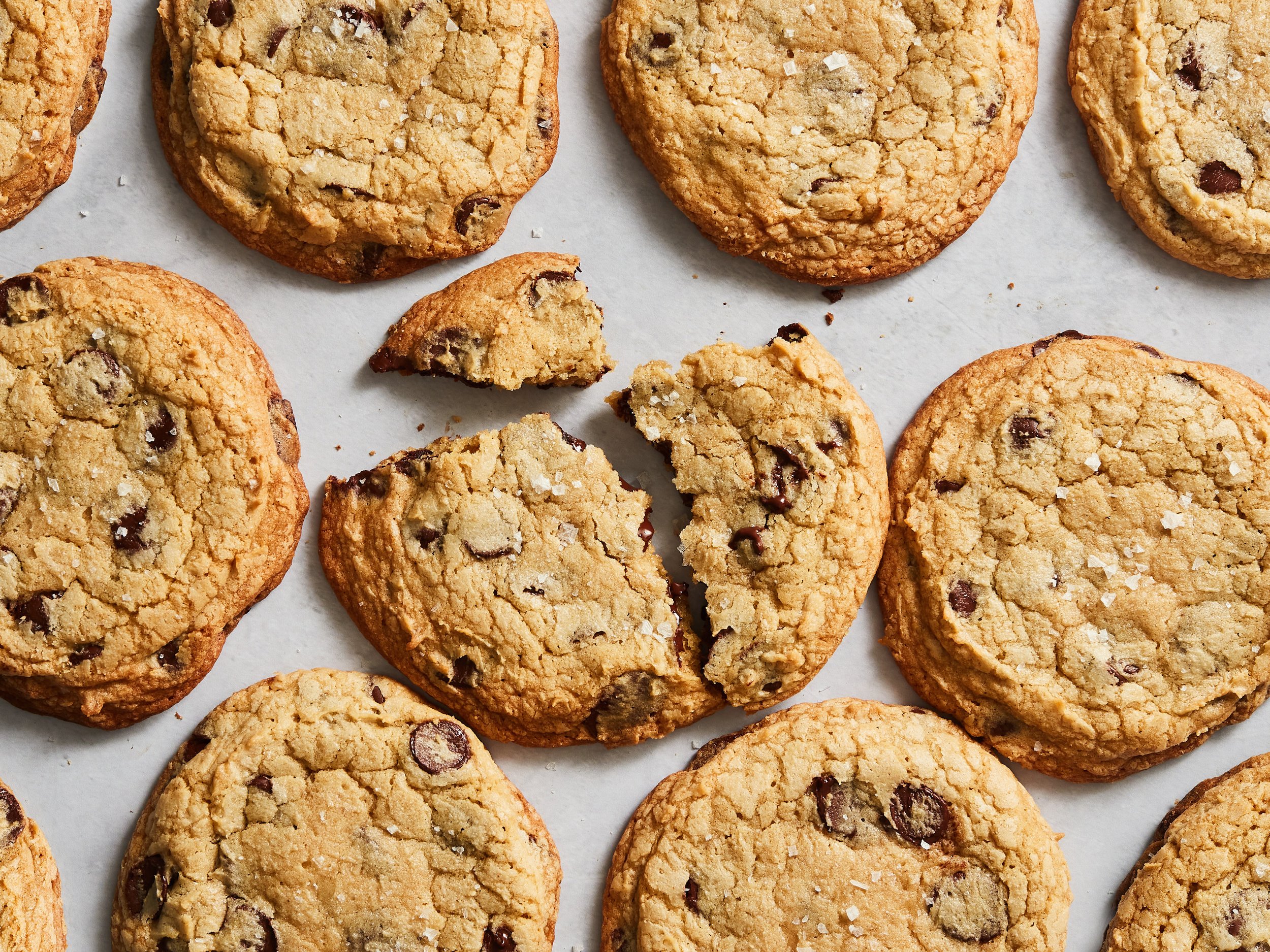 Arrange 4 cookies on the prepared baking sheet, leaving enough room for spreading. Top each cookie with a sprinkle of flakey salt.